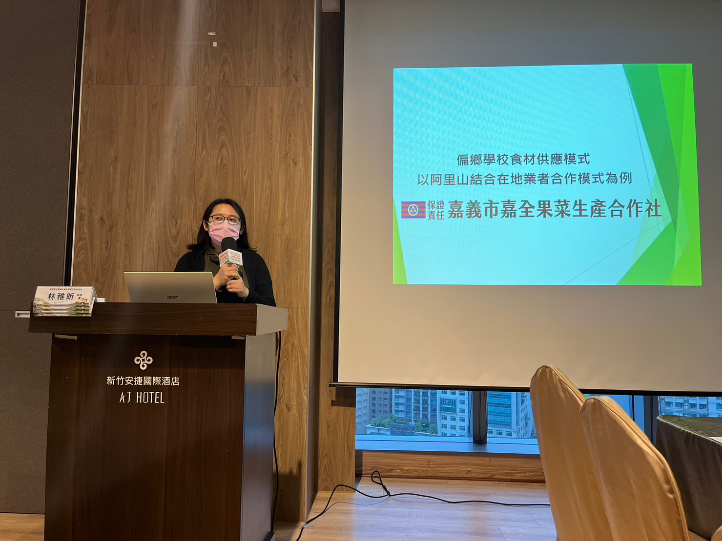 緊接著保證責任嘉義市嘉全果菜生產合作社分享阿里山鄉結合在地業者合作模式,透過預先溝通菜單設計、集貨運輸、新鮮直送、與在地供應商攜手合作等四大關鍵流程,並額外提供學校廚工烹飪教學,以完善偏鄉學校午餐採用國產可溯源食材。