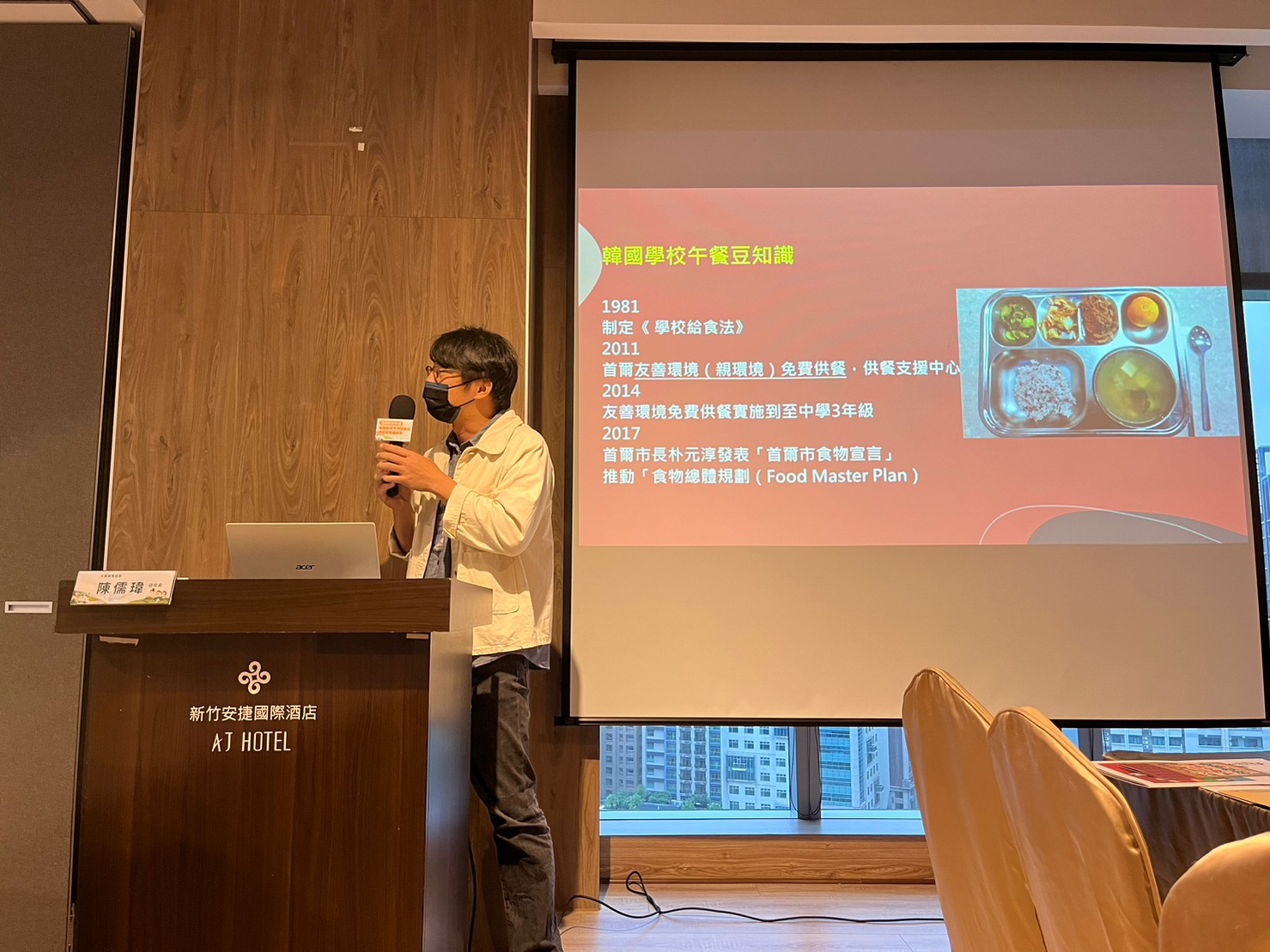 最後由大享食育協會分享日韓兩國學校營養午餐運作模式,包含在食材供應與運輸上,日本設立「學校給食會」負責供應主食及乾貨食材,韓國則除了一般食材供應方式外,尚有農協產地組合共同市場協助集結食材,透過友善環境供餐支援中心直接供應至學校;其餘如完善廚房環境與烹飪設備、針對學生辦理食農教育及設立午餐專法保障學童飲食等措施,皆值得台灣借鏡參考。