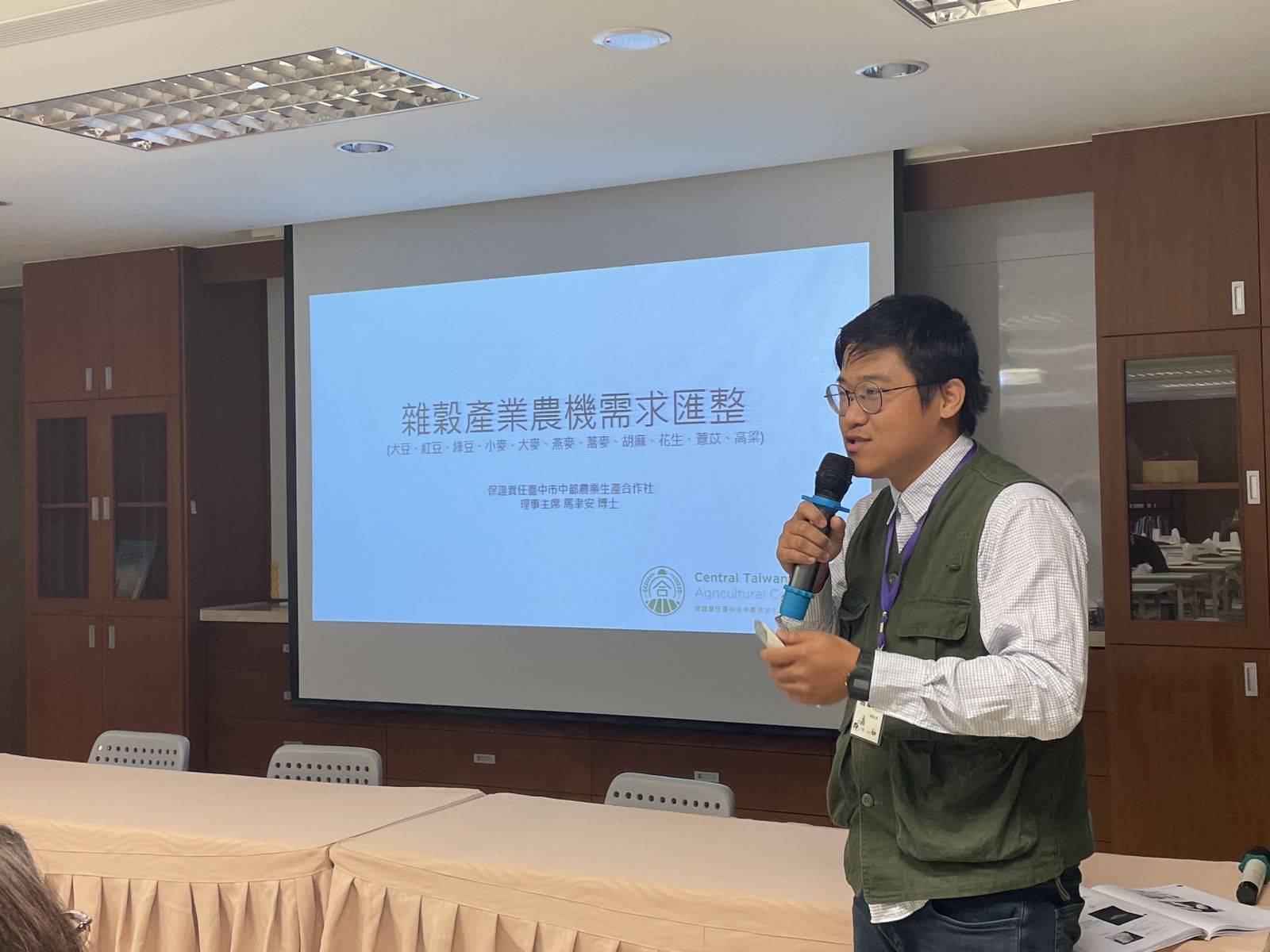 桃園改良場李汪盛課長(左上)分享「我國農機發展現況與未來重點」;及雜糧產業代表馬聿安理事主席(右上)