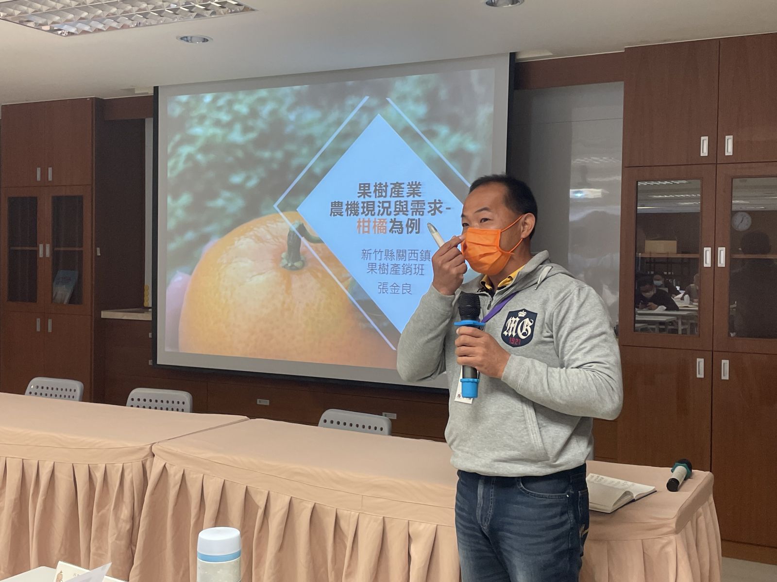 果樹產業代表張金良專業柑橘農友(左下)、李明浚專業葡萄農友(右下)講述「產業農機使用現況及需求」