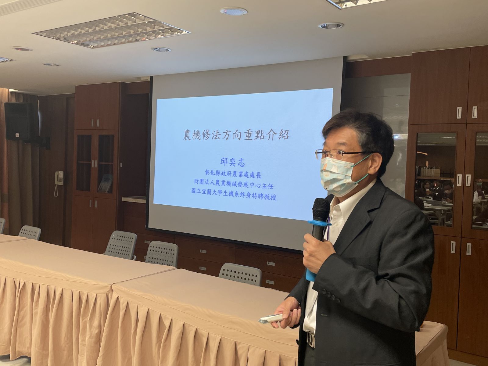 彰化縣政府農業處邱奕志處長(右)分析我國農機修法方向,有效啟發與會者對於農機重要發展議題新思維