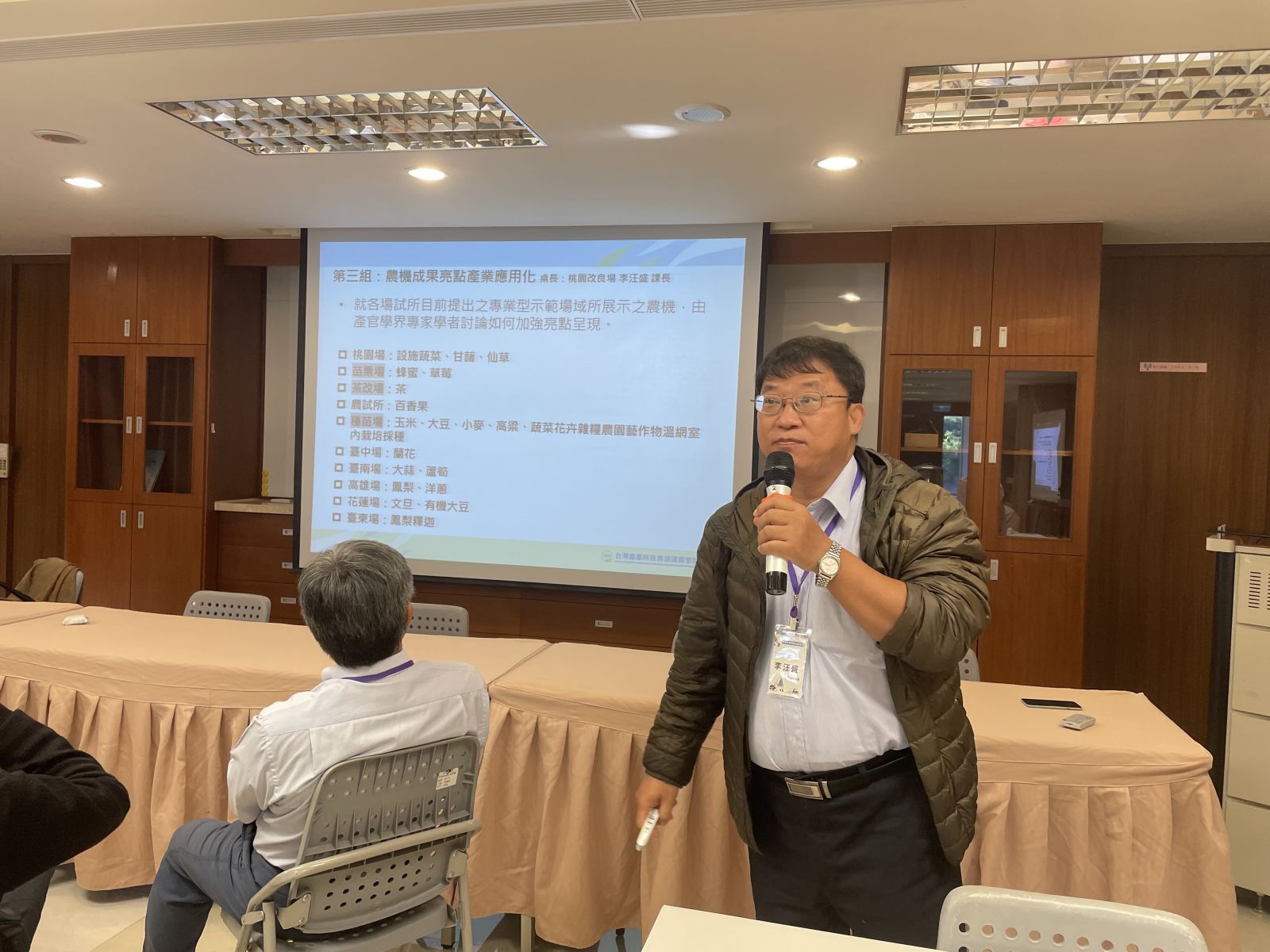 第三組以「農機亮點成果產業應用化」為討論主軸,並由桌長桃園區農業改良場李汪盛課長報告成果