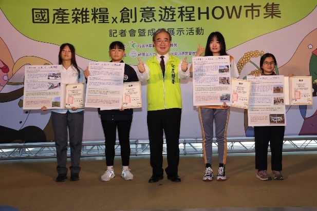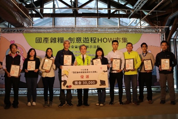 記者會開場邀請彰化市大竹國小帶來「臺灣是寶島,國產雜糧好」精彩表演,透過歌劇方式,讓國人了解國產雜糧不僅取得方便,還能減少碳足跡,希望國人支持國產雜糧一起節能減碳。緊接著進行110年度「國產雜糧體驗路線優化競賽」頒獎,由歷屆獲選單位優化路線內容,經專家學者輔導後,推出九條升級版路線。為期勉各單位對於雜糧產業推廣的用心,特別加碼評選團優選獎,分別為新北市三芝區農會、田野勤學、台南市西港區農會,擔任評選委員的優勢品牌包裝設計公司蔡健國創意總監表示,期許未來在雜糧推廣影片中善用空拍技術與利用動態影片呈現方式,將國產雜糧的核心價值清楚明確的傳播於國人,以提升國人對國產雜糧的認識。