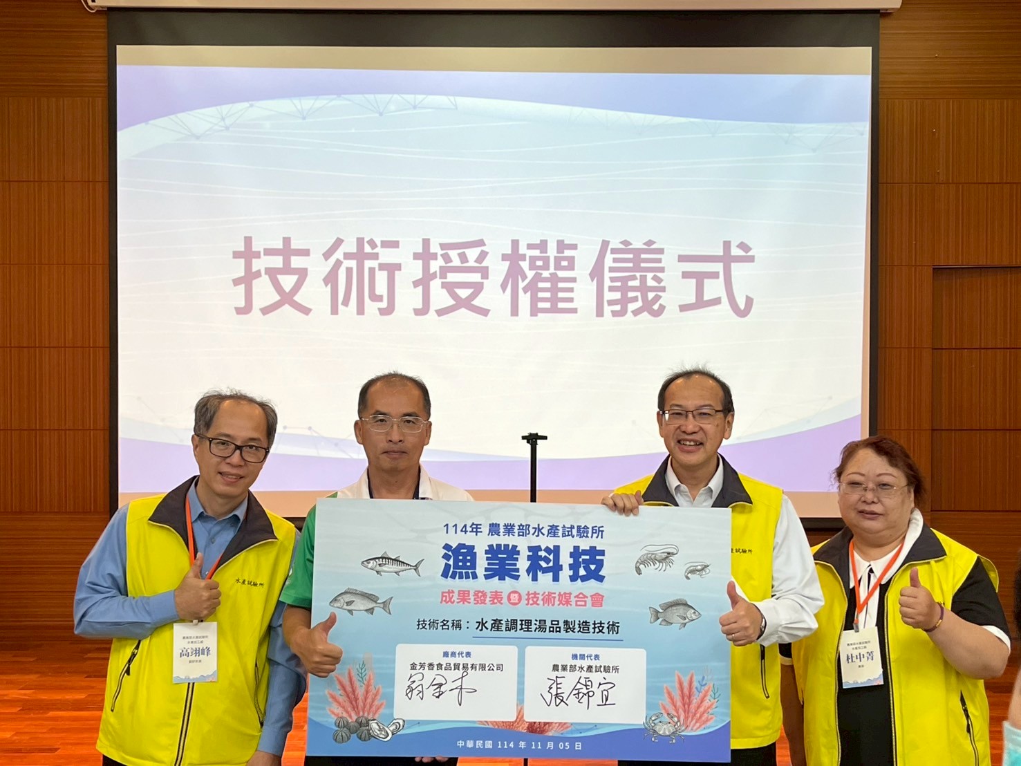 為推動科研成果轉化與產業應用,農業部水產試驗所於11月5日假高雄科技大學楠梓校區舉辦「114年漁業科技成果發表暨技術媒合會」,集結全所十個研究單位的研發能量,共同展示22項具創新性與實用性的技術成果。活動吸引來自產業界、學術機構及公部門的專家代表齊聚,現場交流熱烈,展現臺灣漁業科技發展的多元實力與持續進步的動能。