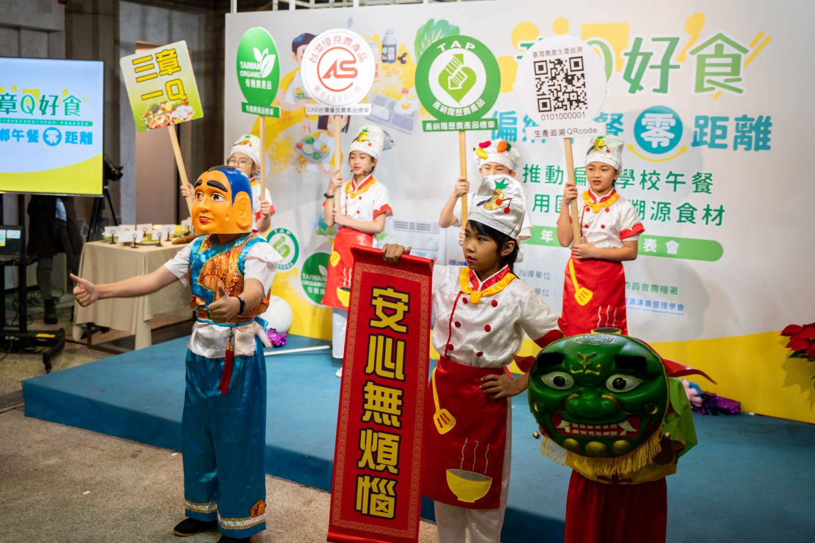 本次活動特別邀請成立於2014年的彰化大竹國小兒童歌仔戲團小朋友,化身總鋪師料理最健康三章一Q營養午餐,帶來趣味又健康的開場表演為活動揭開序幕。同時由陳啓榮主任祕書、許輔主任、黃瀞儀組長、繆自昌主任秘書、陳明信理事長一同參與成果發表會啟動儀式,呈現各政策與產業單位的專業策略或技術內容,包含「章Q好食新鮮送」、「偏鄉午餐品質優」、「食材追溯有保障」、「中央廚房設校園」、「偏鄉菜色創新意」等五大偏鄉午餐推動成果。