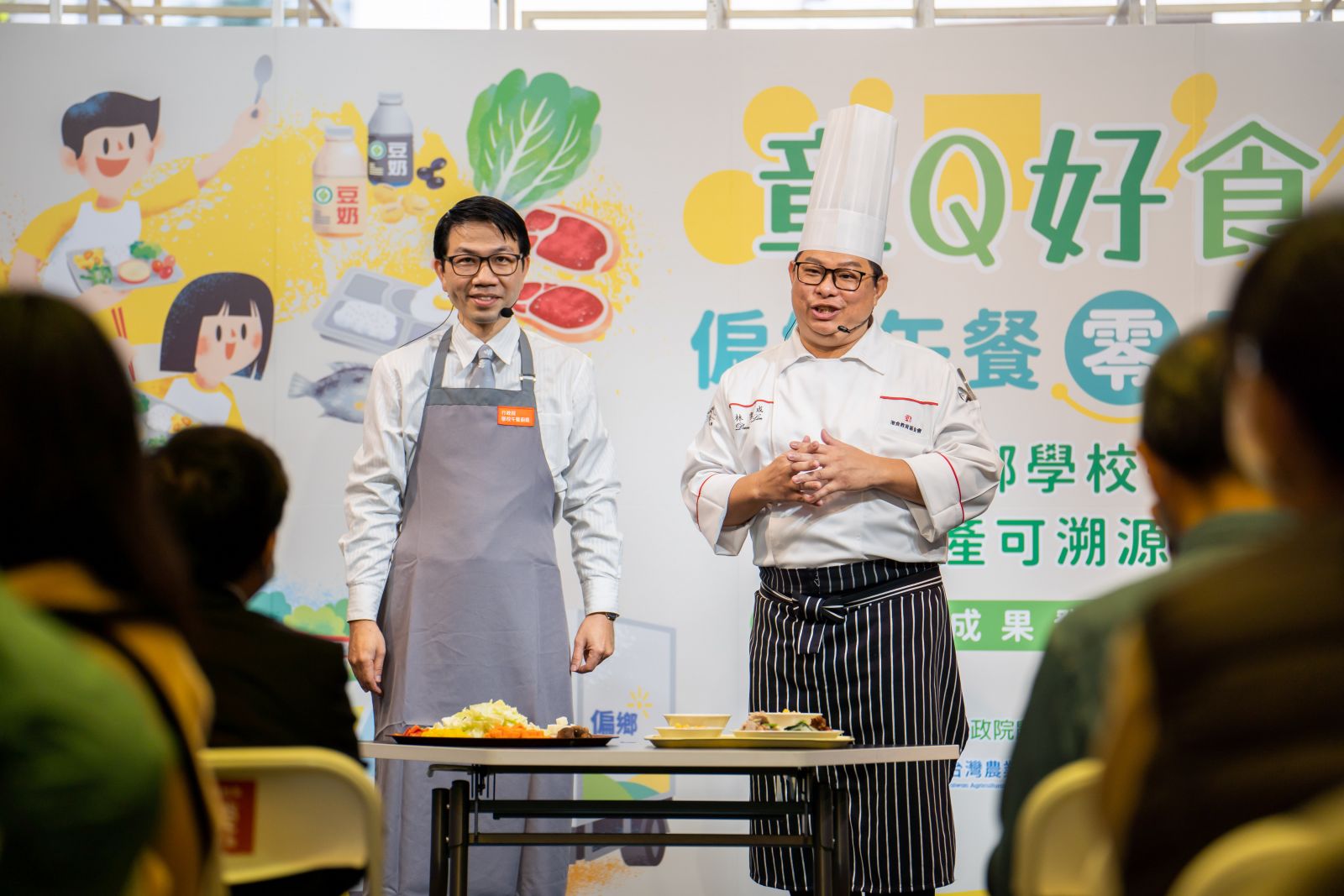 另邀請灃食公益飲食文化教育基金會林奕成主廚與臺北市餐盒食品商業同業公會高嘉鴻理事長於現場進行食材料理變化教學-冬蔬味噌豬肉,同時分享食材變美味的烹調秘訣,讓偏鄉午餐菜色更美味豐富且具多樣性,讓學童更喜歡吃,進而達到零廚餘,減少食物浪費。