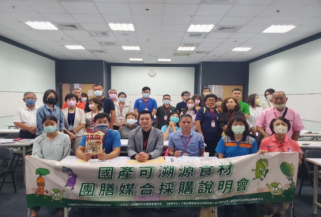 為解決學校午餐採購國產可溯源食材之困難,學會延續去年執行建置「偏鄉學校午餐食材媒合系統」計畫精神,擴大媒合系統服務範疇至全國校園午餐的團膳業與自設廚房學校,提供學校查詢當季三章一Q食材供應狀況及提供即時媒合採購功能,同時提供生產者進入學校午餐食材供應體系的管道。學會透過辦理三場次國產可溯源食材團膳媒合採購說明會廣邀有意願供應校園午餐食材的農民團體與生產者加入,三場次活動分別於112年5月24日、6月30日和7月21日在臺中、高雄和宜蘭成功舉辦,中華民國餐盒食品商業同業公會全國聯合會陳明信理事長率團膳公會代表參加支持。三場說明會共有120位參與者出席,其中包括各地農會和團膳業者代表。