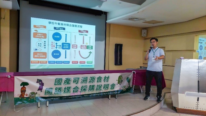 此次說明會旨在推動國產食材的使用,建立可溯源的食材供應體系,為消費者提供更安心的團膳食材。活動由運籌管理學會的孫廷瑄副研究員講解學校午餐食材供需現況,並詳細介紹食材媒合系統的運作。活動中邀請餐盒公會的阮專銘秘書長分享團膳食材採購與供應的經驗,讓與會者更深入了解團膳業者的需求,並加強供應商與團膳業者之間的合作與溝通,進一步建立穩固的供應鏈,提高食材的品質和安全性。