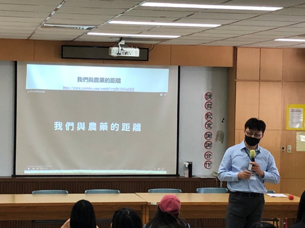 首先,簡要介紹全球糧食生產的危機報導,透過問答讓學生們從生活上遇到的氣候思考起,學生們回答踴躍,例如「颱風會造成作物產量的損失」、「去年台灣缺水,導致作物無法種植」等。接著,讓學生們瞭解如何在氣候變遷的環境下提升作物的生產效率,亦即作物產量的「開源」與「節流」。例如:利用育種及選種為增加作物產量的「開源」;透過農藥保護作物減少損失為「節流」。同時透過中華農藥協會製作的「我們與農藥的距離」的影片,介紹農產品農藥殘留標準的內涵,只要在合理的範圍內施用,不僅可以保護作物的產量,亦不會對人體造成傷害,另也向學生們介紹為何校園午餐使用三章一Q食材能讓食物更安全。