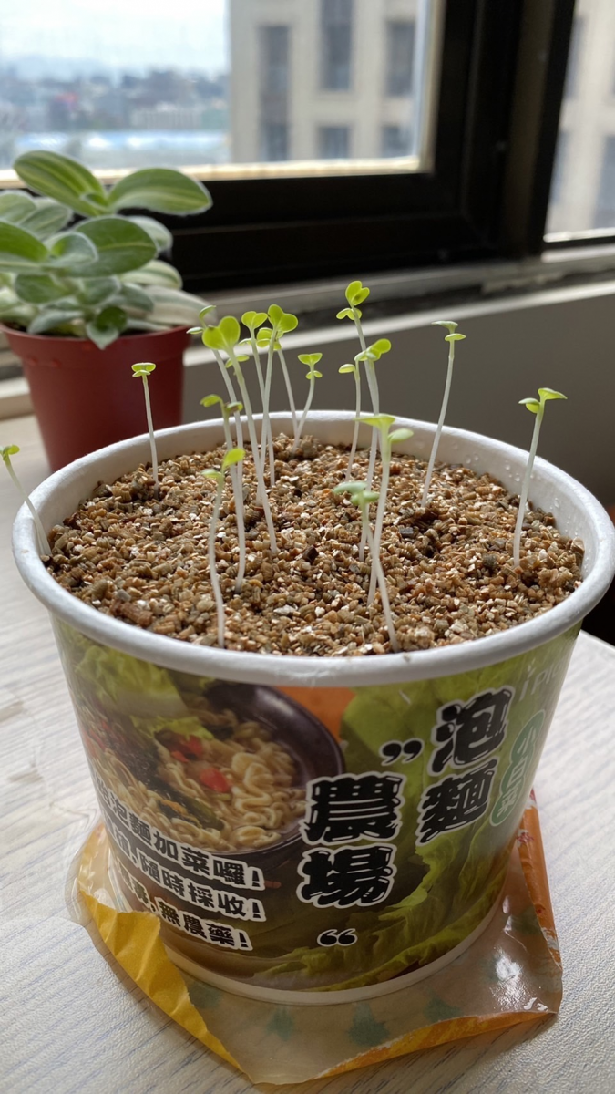 課程的尾聲,本學會提DIY蔬菜種植(泡麵農場)讓學生體驗蔬菜生產25天的生產歷程,以增加學生珍惜食物的認知,進而減少食物的浪費。另,同學課後回饋單表示:這次的活動讓他們瞭解很多的農產品從育種、栽種收成、運輸、產銷履歷都為消費者做把關,且本學會李翎竹秘書長在講解艱難理論時,用簡單問答讓理論不枯燥乏味,反而聽得津津有味!同時這次的活動從聽、玩到回家自己種,這些過程也可以加深印象,希望可以再辦一次。