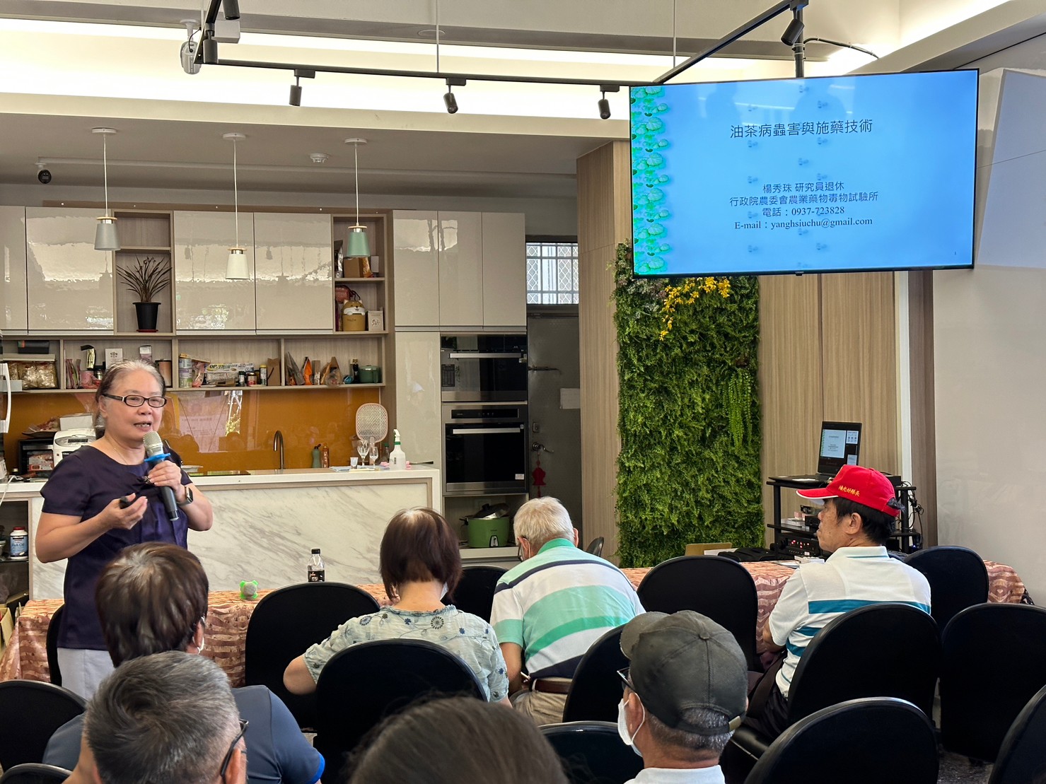 在下午的課程中,由藥毒所前研究員楊秀珠博士講解油茶整合病蟲害管理、用藥安全管理和施藥技術。她邀請了施藥技術相關廠商來介紹噴灑農藥的器具,讓參與者獲得了實用的知識和技術。