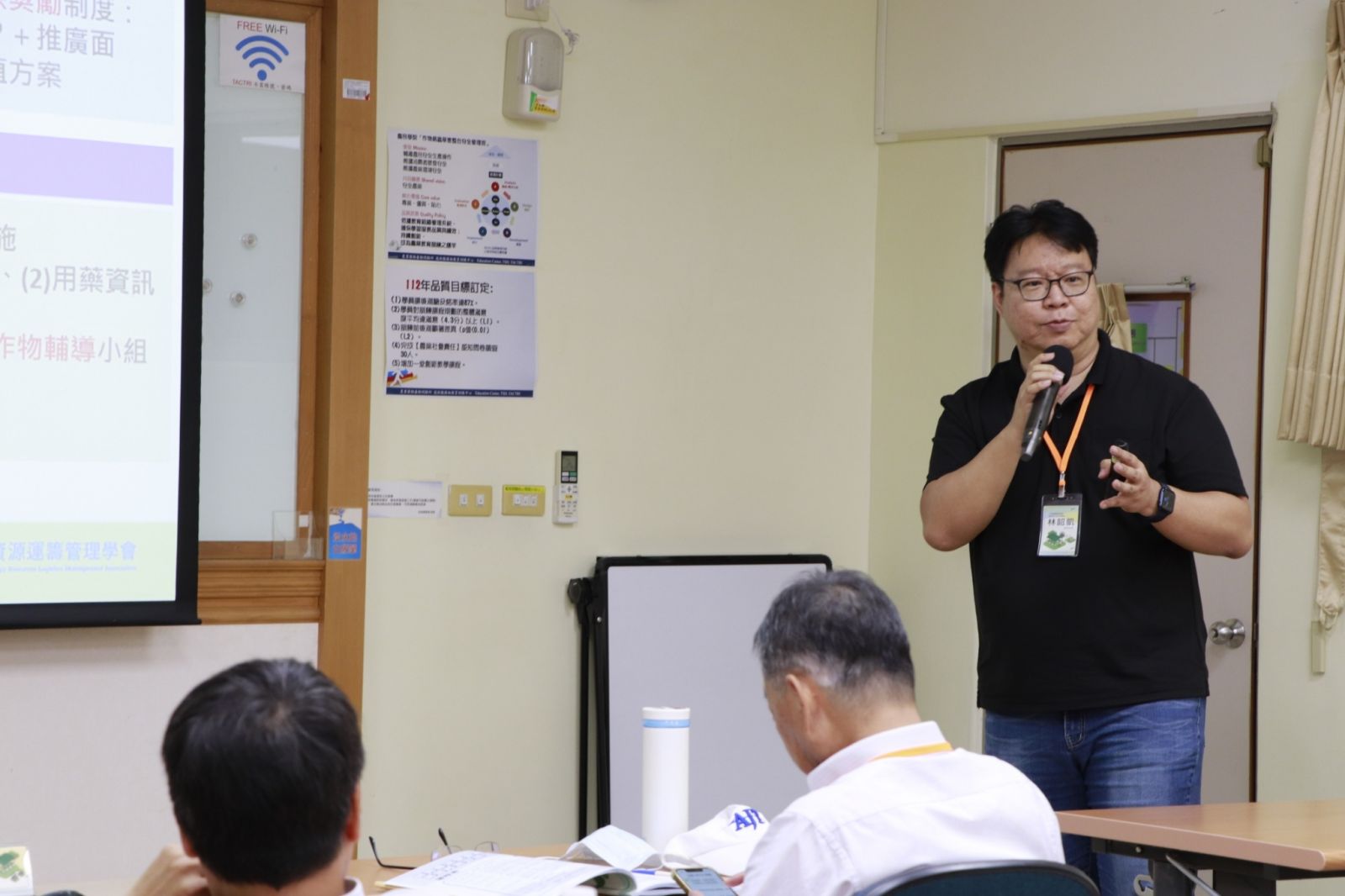 本學會之黃靖嵐副研究員介紹田間管理策略─IPM(Integrated Pest Management),帶與會者了解新興病蟲害管理方法,目標在將害物之族群控制在經濟危害水準之下,並非趕盡殺絕,不同於以往傳統農業目標在將所有害物去除殆盡,當無可避免需使用藥劑,傳達IPM概念非不用藥而是安全用藥之思為。未來希望提升農產品安全性及品質,降低農藥危害農民健康之風險,將對生物及環境影響降至最低,藉此落實農藥減量,生物及環境永續發展之目標。