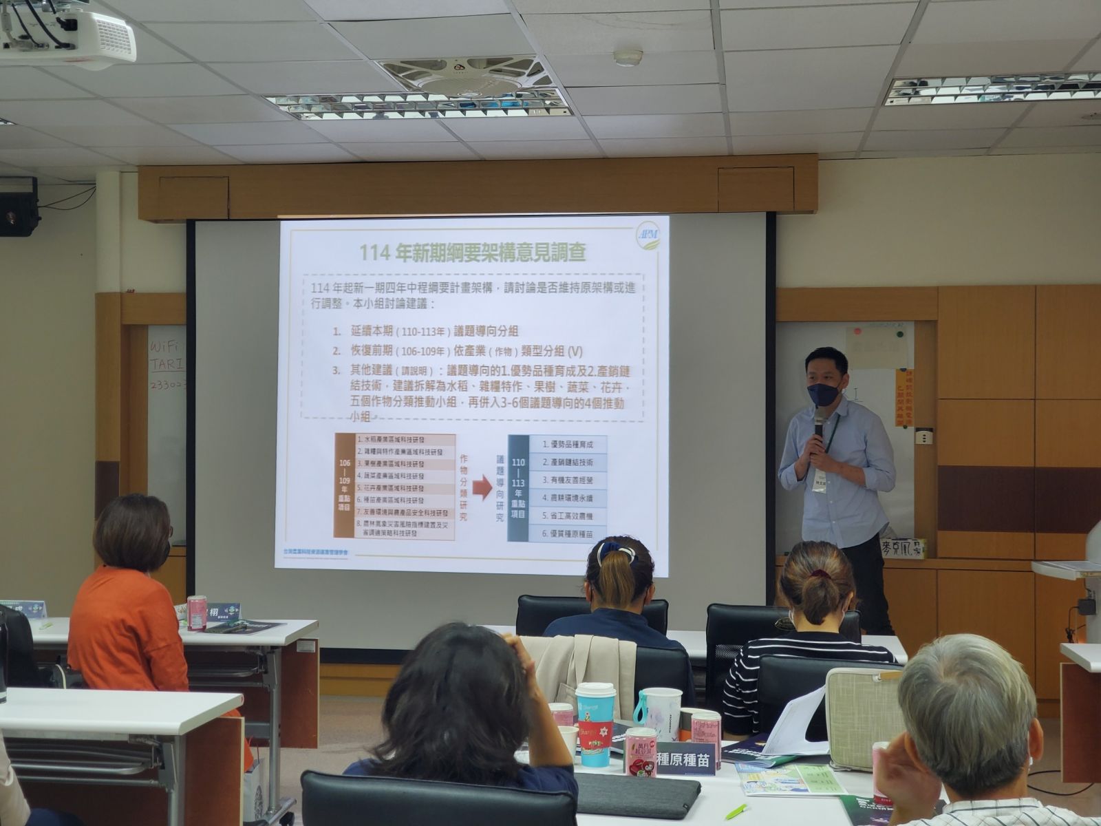 鑒於此,本學會受邀於民國111年11月24日(星期四)於行政院委員會農業試驗所教育訓練中心2樓教室辦理「農糧農環綱要知能精進暨OKR研議共識會議」,邀請雲科大經營與管理研究中心林昱成主任、國家研究院蔡宛栩副研究員、農業試驗所林毓雯副研究員,及農業試驗所劉滄棽研究員兼組長,並特別邀請資訊中心劉頂立科長及花卉中心戴廷恩主任擔任講師分享農業資料治理推動案例,以線上影片方式進行經驗分享。