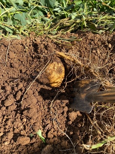 下午則安排體驗2022國產雜糧十大體驗路線-「薯」童謠、採「藥」趣,先由二號倉庫江玉誠店長簡介體驗路線規劃內容,接著由三芝區農會周正男主任帶領參觀農民直銷站,提倡推動農產品「地產地消」概念、建立小農與消費者互動管道及互信關係,最後由蕃婆林農場鄭志偉執行長帶領至淺水灣田區介紹三芝地區甘藷種植特色,及下田體驗挖地瓜。