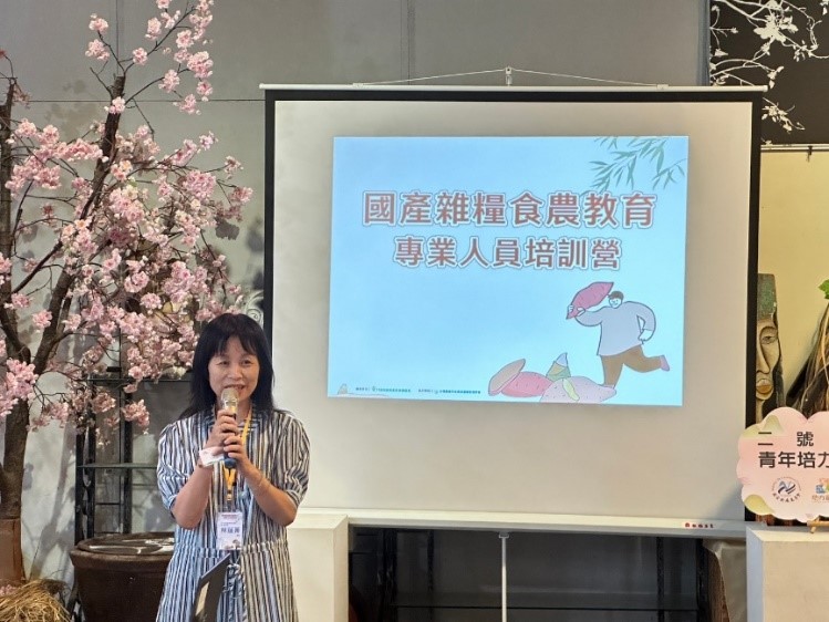 活動首日上午在三芝區農會二號倉庫舉辦雜糧食農教育課程,由國立臺灣師範大學家庭研究與發展中心林如萍主任分享「雜糧體驗路線規劃設計」,講述食農教育的理念、架構與目標,及以食農教育ABC(三面六項)引導思考規劃體驗活動,並利用教具及案例讓學員實作分析設計概念及可創新之內容,另也推薦市面上現有食農教育教材供學員後續參考應用。