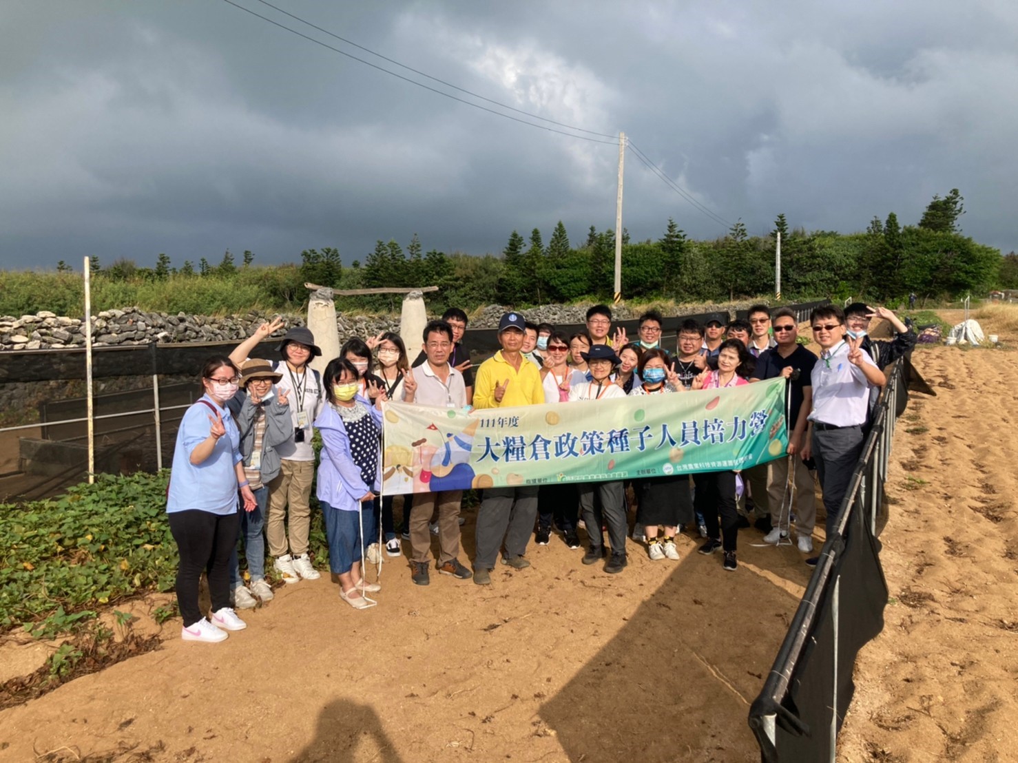 行政院農業委員會農糧署(以下簡稱農糧署)補助本學會於111年9月26-27日辦理「大糧倉政策種子人員培力營-第二梯次」,於澎湖辦理兩天一夜的行程,共24人參加。以國產雜糧生產、加工應用、政策說明為主軸,透過活動促進農業種子人員了解大糧倉政策內涵、學習政策標竿案例、提升政策推動技能,以利國產雜糧產業發展。本次培力營內容包含主題演講、分組腦力激盪、產業參訪等,例如親身走訪農地、工坊及著名的箱網漁業,了解澎湖當地少雨、強風下的農業因應方案,期望藉由多元產業面向帶給與會人員對澎湖雜糧產業更深的認識,並發掘可借鑑之處。