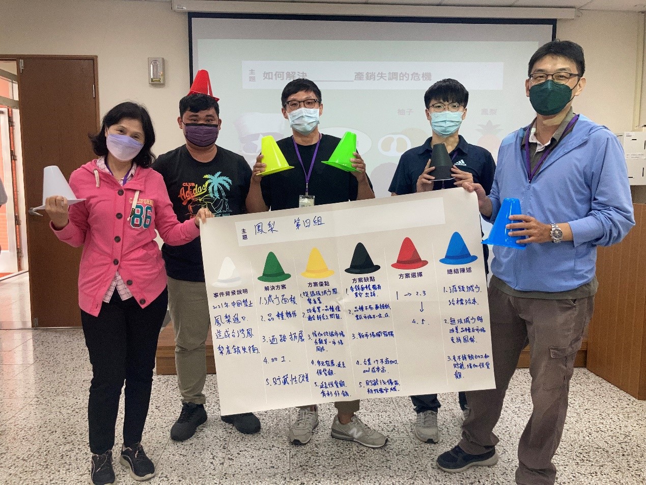 首日上午於國立澎湖科技大學辦理主題演講,先由農糧署賴冠如辦事員介紹國產雜糧產業概況、大糧倉計畫推動目標、推動策略與執行情形等;接著邀請到行政院農業委員會高雄區農業改良場澎湖分場王俊能助理研究員,分享澎湖雜糧產業推動現況與展望(落花生、甘藷)、澎湖特色產業推動現況(嘉寶瓜、稜角絲瓜)等。當日下午則由本學會李翎竹秘書長介紹策略規劃工具-六頂帽子思考法,並帶領分組腦力激盪,以「如何解決______產銷失調的危機」為主題,及柚子、鳳梨、釋迦、石斑魚為例作討論,依序從不同的角度進行問題解析,將問題適度切割,使思慮更為周全,最終也能將思考模式及討論成果轉換成雜糧使用。