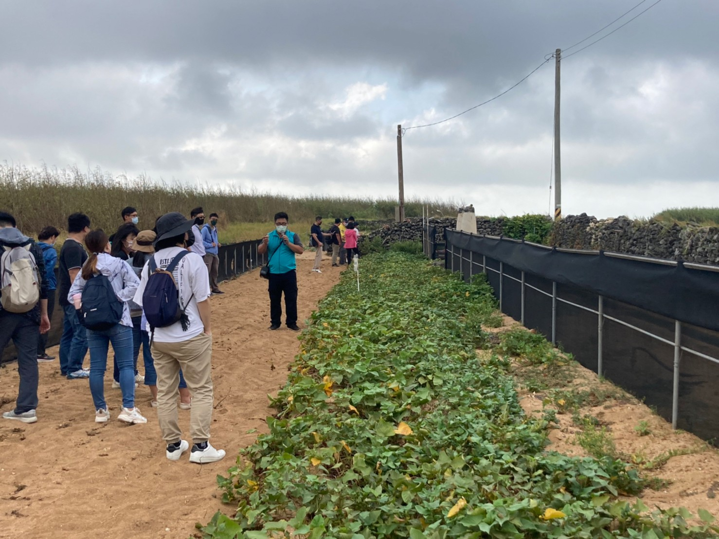當日下午與翌日早上,為澎湖特色產業參訪行程,期間分別至白皮種甘藷田、稜角絲瓜田、香茹茶製茶工坊,及異業產業經營標竿之海上箱網養殖,透過深入走訪與農民、業者親身接觸,了解在澎湖半乾旱與強風的氣候下,如何因應、發展出當地的特色農業與漁業。