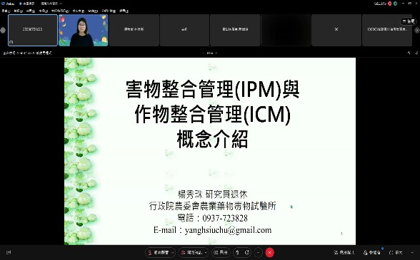 本學會於5月9日及5月16日分別辦理「作物整合管理(Integrated Crop Management, ICM)工作坊」二梯次課程,於5月9日課程中,首先由楊秀珠博士介紹「作物有害生物綜合管理(IPM)與ICM概念」,並邀請第二屆「永續善農獎IPM Award」「現場操作組」得獎者臺南市玉井區果樹產銷班第60班林易辰班長、110年「產銷履歷達人」彰化縣二林鎮紅龍果產銷班第19班莊木期班長分享田間管理心得,為本次課程二梯次課程揭開完美序幕。