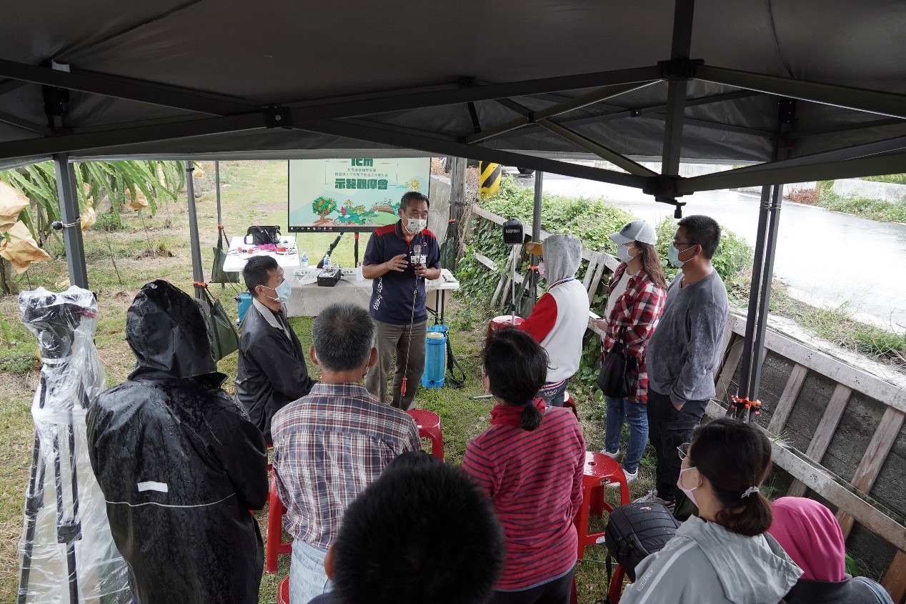 本學會於111年10月31日於佳維農果園辦理「推動產銷履歷集團驗證導入作物整合管理(ICM)示範計畫之成果觀摩會」。本次觀摩會以「蝸牛多元防治技術」為主題,透過示範業者之分享與專家講解,期能協助農友解決長年以來蝸牛為害的問題,運用多元防治方式以達成化學農藥減量,進而提升農友導入ICM之意願及能力。本次參與農友以彰化縣二林鎮紅龍果產銷班第19班為首,甚至有農友遠從嘉義、臺南地區參加,共有32位參與。雖然遭遇外圍環流影響而在強風陣雨中辦理,但農友風雨生信心、積極參與本次活動,凸顯本次主題對於農友的重要性。