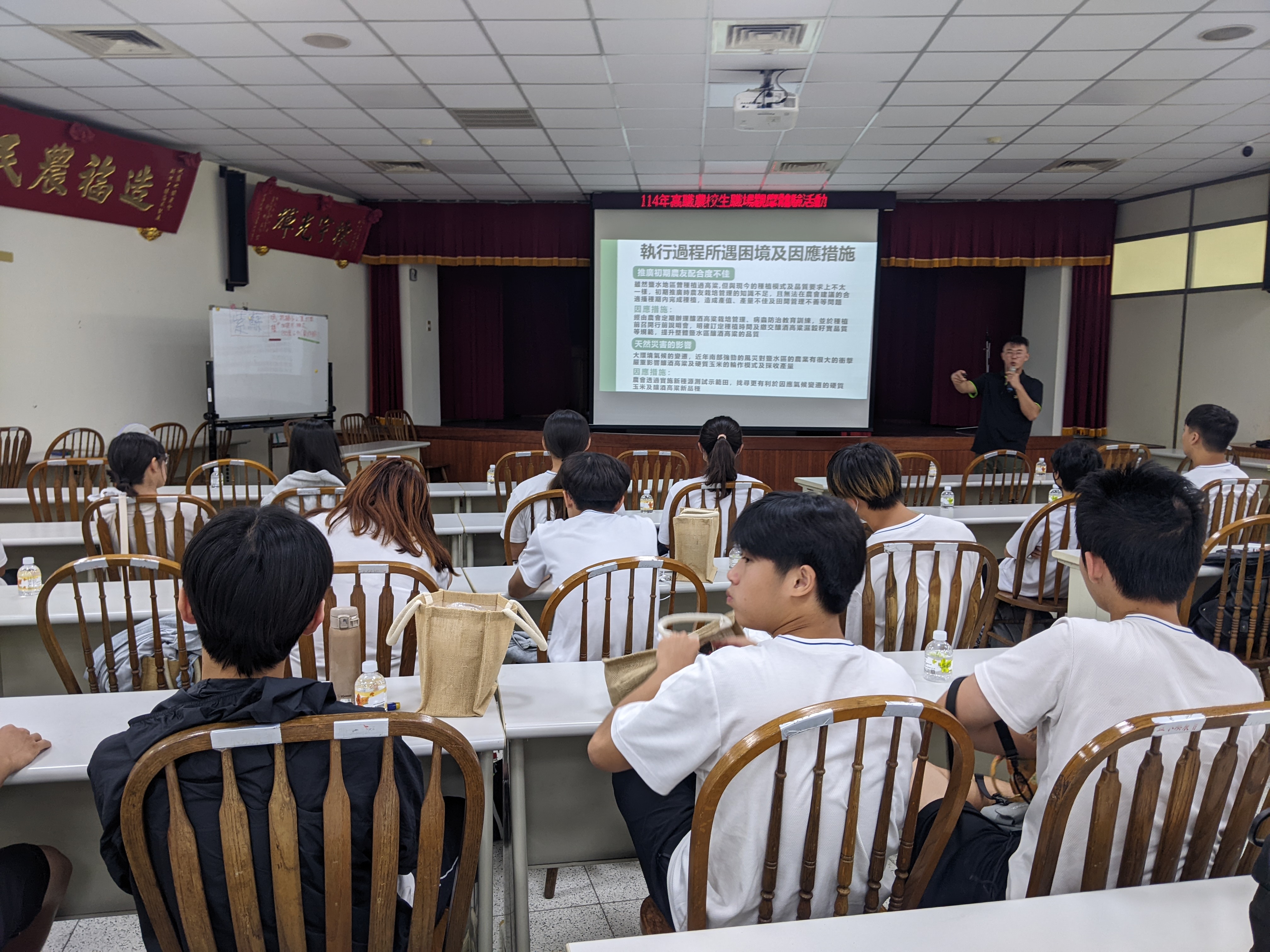 學生們在回饋時表示,這次參訪走進從鹽水區的農業現場,認識了大型的農機具、硬質玉米和酒釀高粱種植和管理要點,它們都是重要的糧食作物,因為全球天氣變化大,農業不能一成不變,要依照現在的氣候來選擇適合的新品種,才能確保收成穩定。還有來到西港區胡麻產地,認識到台南一號黑芝麻的種植和加工,它的油脂香氣濃,適合做芝麻油和芝麻粉等產品等,從種植到加工都要細心管理,才能做出品質好的農產品。看到農友的親身分享,學生們也體悟到在農業中要學的東西非常多,不能只會一種專業,除了種植技術和病蟲害防治外,還要懂得銷售、 市場行銷,以及人才管理,才能讓農場整體運作更順利、經營更有效率。