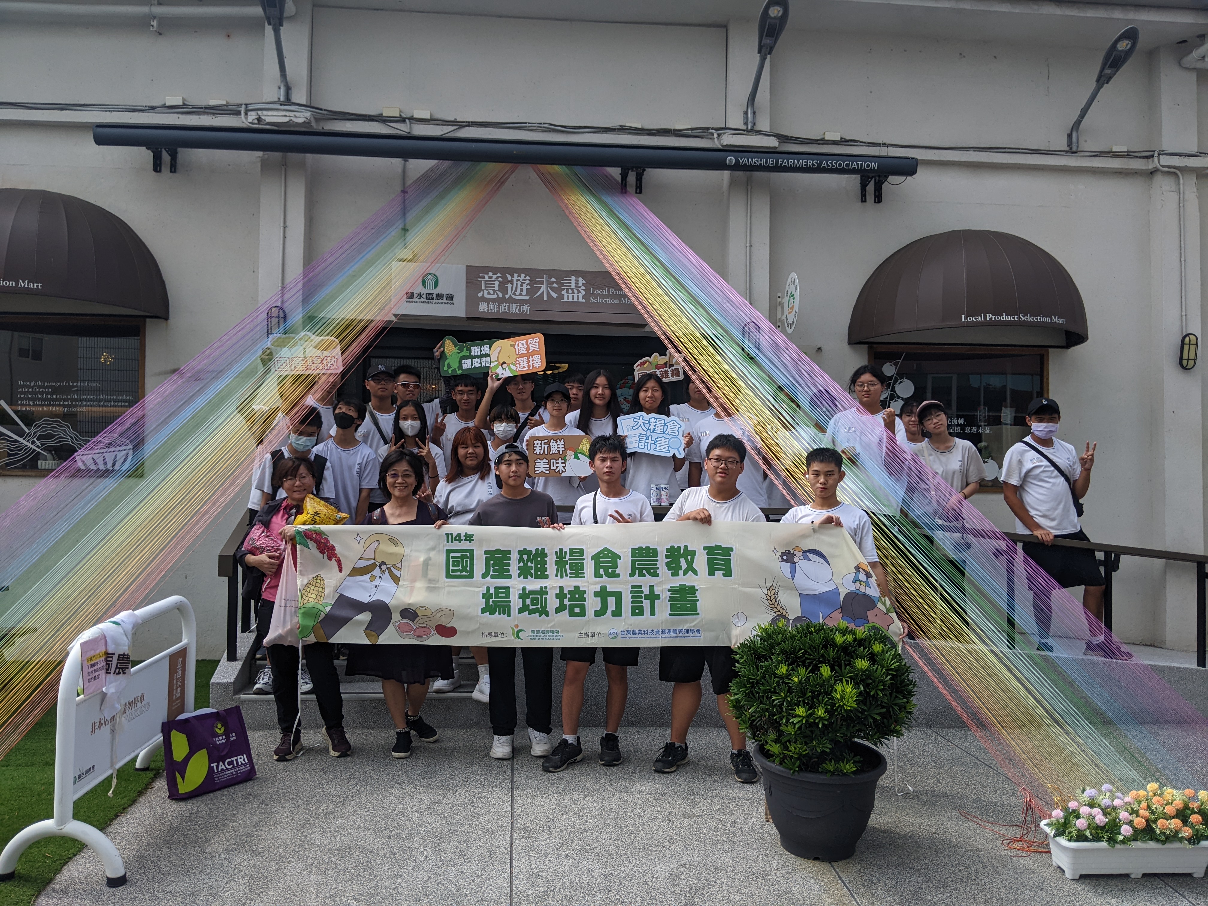 由鹽水區農會講師介紹近年推動雜糧輪作的策略與輔導經驗。在講師的帶領下,學生認識鹽水地區的雜糧輪作模式,了解農會如何協助農民穩定生產與行銷。面對學生提出的農民收益與氣候挑戰問題,講師也逐一回應,現場互動熱烈。並參觀鹽水區農會產銷部,展示多項由農會開發的加工產品與其他國產農產加工商品,師生們對農會產銷超市的環境美輪美奐、產品種類多元印象深刻,認為農會通路展現出新的面貌與活力。