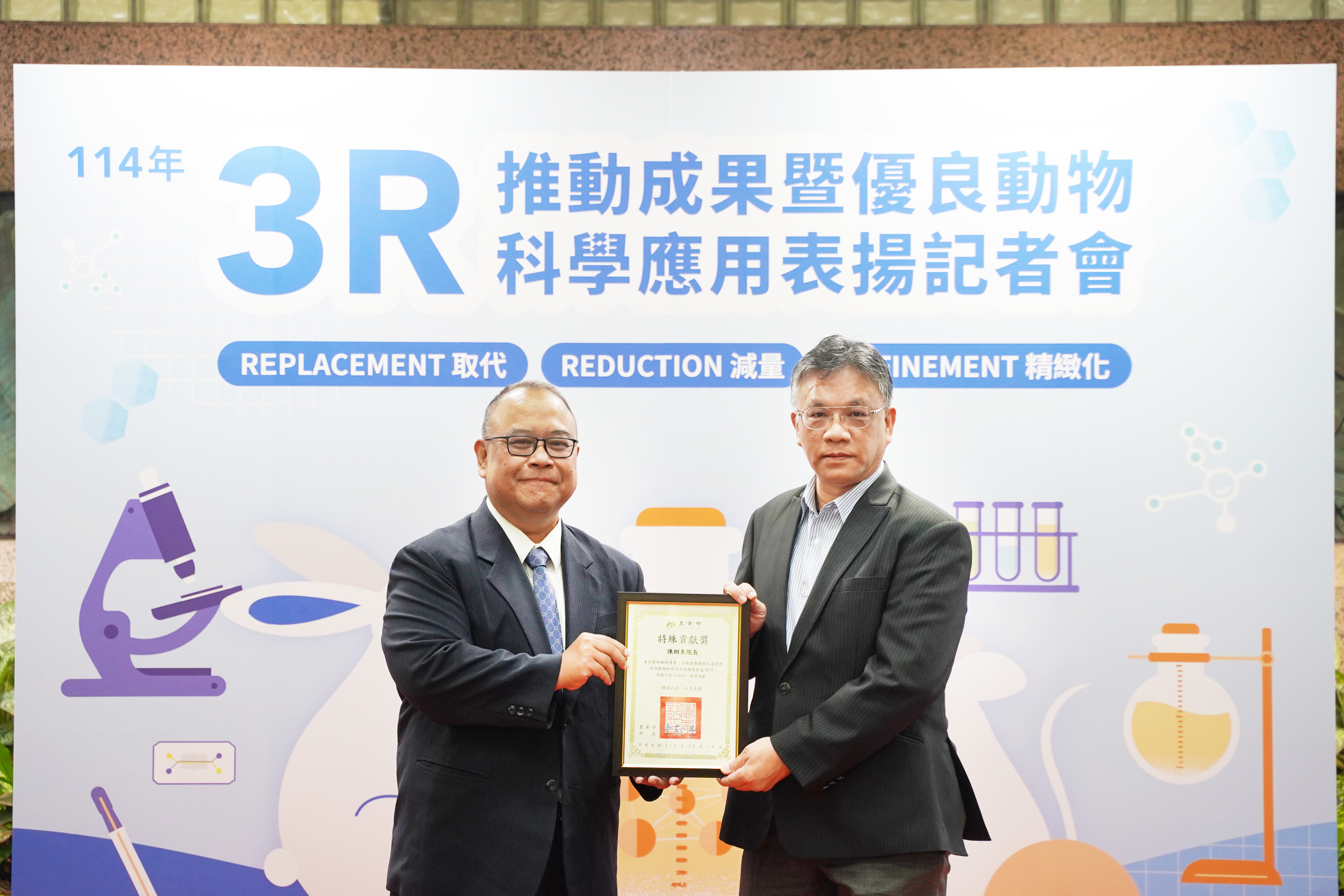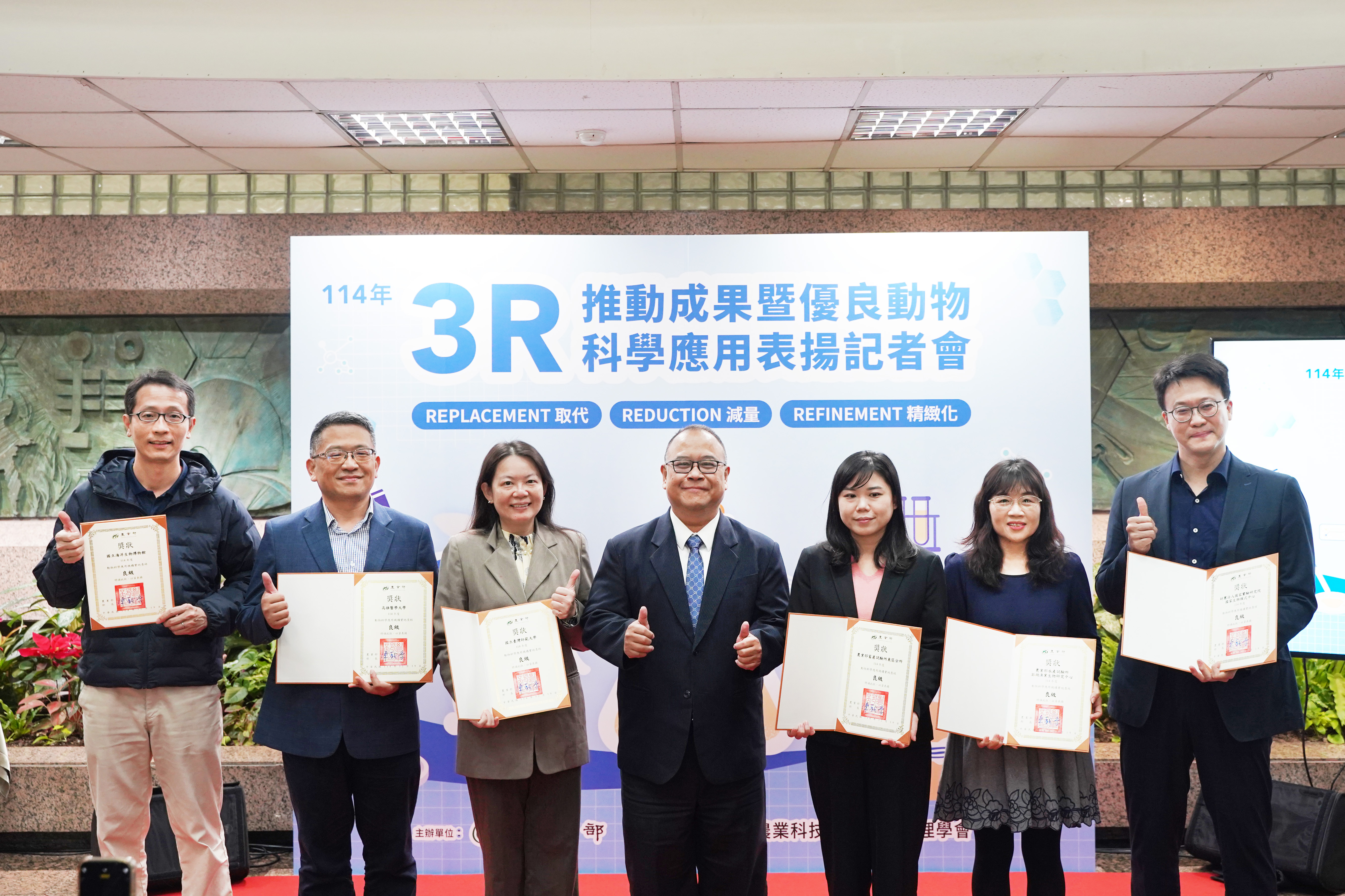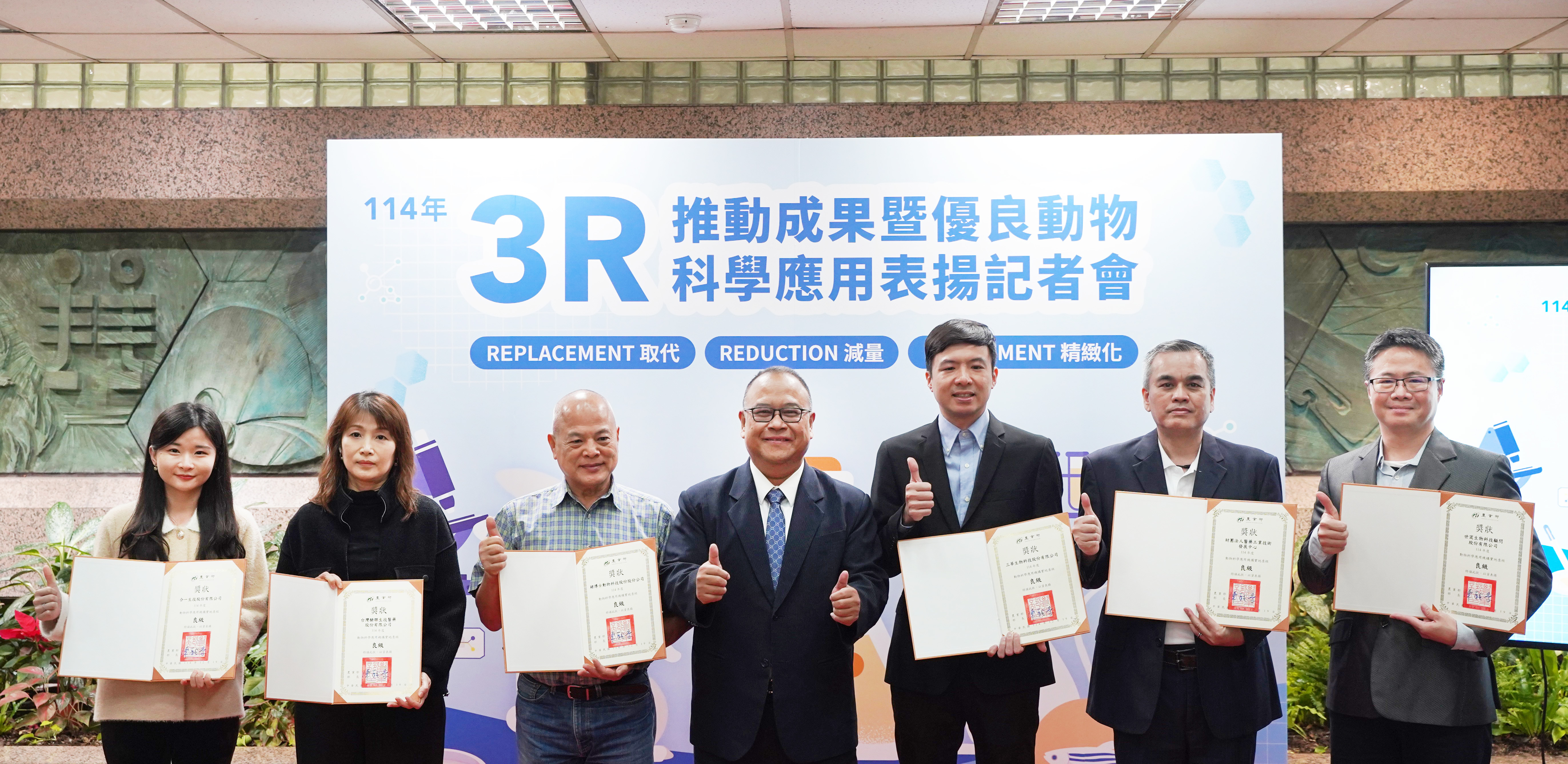 面對國際研究倫理提升與動物替代科技快速發展趨勢,我國積極推動3R(取代、減量、精緻化)理念,建立以科學驗證、制度化管理與產業應用並進的永續科研模式。本次記者會旨在呈現農業部在實驗動物3R成果,動物替代技術研發、法規建構與推廣實務的階段成果,並表揚114年度農業部實地查核評核為優、良等級的動物科學應用機構,與協助農業部建立實驗動物人道管理制度超過20年的專家,期強化社會對實驗動物福利與科研倫理的認識,並深化跨領域合作,共同推動符合國際規範並兼顧科研目的之替代方法。