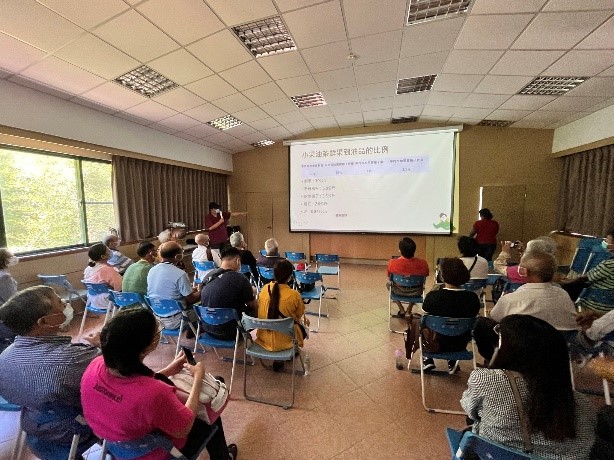 首先,由農糧署東區分署張秉浤課員講解油茶產銷履歷申請注意事項與補助事宜,老師特別分享油茶夥伴最多疑慮的加工驗證進行說明,並協助逐一解惑,透過講師的說明與討論,讓油茶的夥伴們能充分的了解加工驗證與貼標相關流程與規定;緊接著羅士凱股長,進行油茶的栽培管理課程,透過介紹油茶每個季節所生長的生理特性引導學員如何給予油茶樹相關施肥施藥建議,讓學員們能夠簡單易懂的理解;由蘇光明秘書長介紹自身在使用的機械化油茶剝殼機、乾燥設備與簡易的乾燥設備,希望在地能透過機械化設備導入提升在地油茶籽的新鮮度。