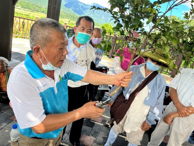 下午則安排至卓溪產銷班王德義班員的園區進行觀摩,並邀請蘇秘書長進行園區新植三年油茶樹與成樹的修整枝實作,透過新植樹如後透過拉枝作業增加樹冠面積,成樹透過修剪枝提升植株的透光度通風,使油茶果產量提升,最後羅股長再加碼,邀請現場學員至他的豐產苗試驗田區進行觀摩,本次觀摩讓學員們嘆為觀止,原來選到對的種苗可以讓園子裡一千多棵樹幾乎都結實纍纍。