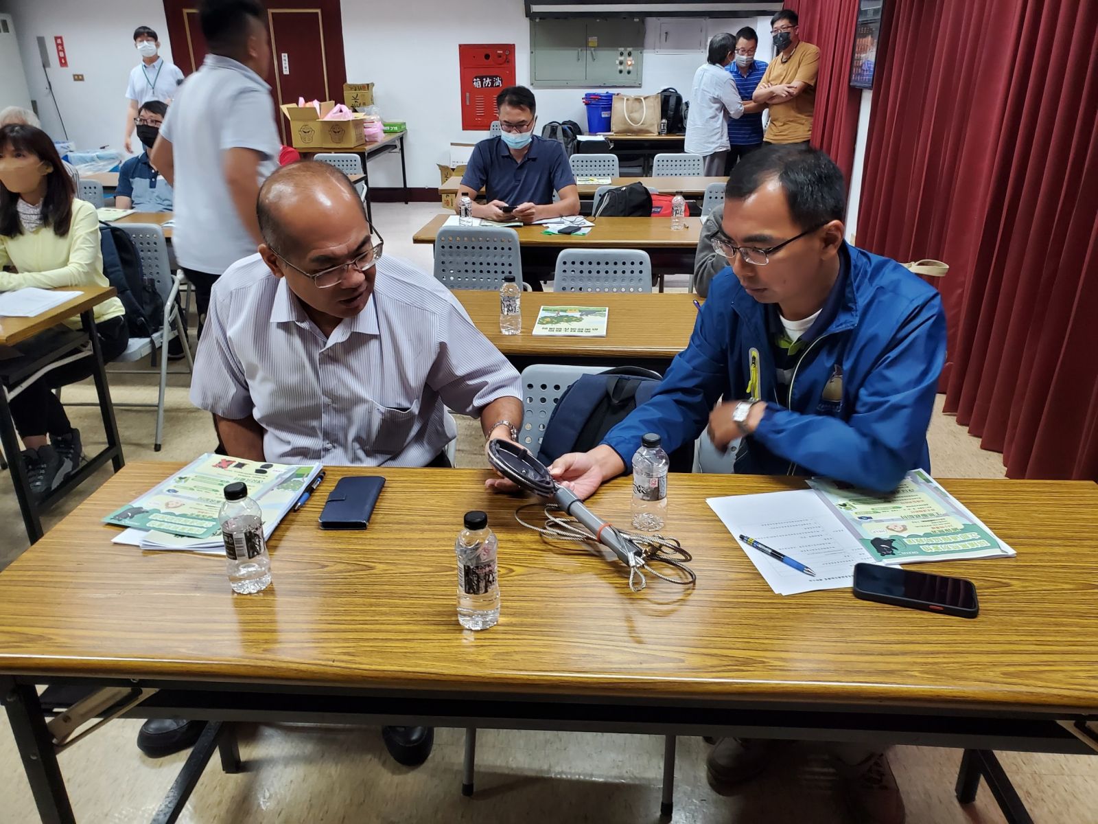 (圖右)宜蘭縣政府農業處畜產科李建強專員講說電圍網補助申請及架設驗收
