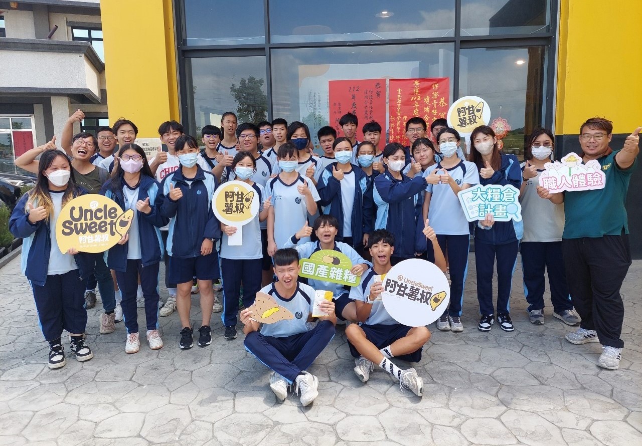於112年10月3日針對國立中興大學附屬臺中高級農業職業學校(以下簡稱興大附農),以及臺中市立新社高級中學(以下簡稱新社高中)共辦理兩場次,本次活動主要參訪中南部地區甘藷產業,總參與人數為68人,於活動最後隨隊老師給予高度認可,並表示藉由此參訪交流可讓師生們了解國產雜糧-甘藷產業鏈的樣貌,及加工嚴謹的流程與規模,開闊學生們對於產業鏈中不同職位的想像,並知曉未來職場所需技能及走向。