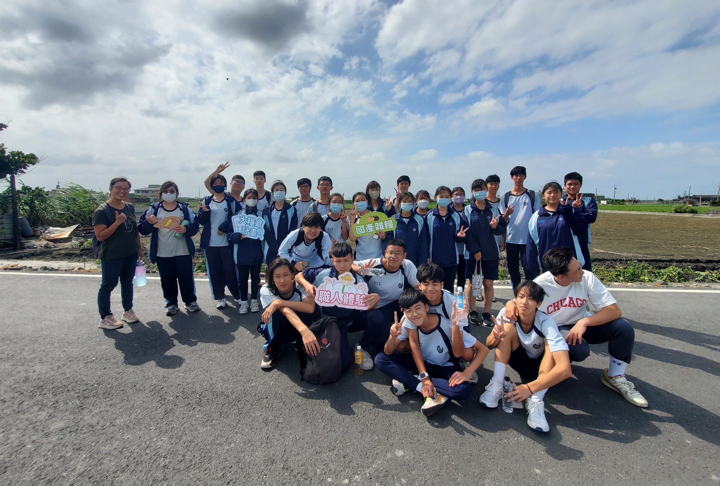 圖、興大附農及新社高中於大城鄉農會田間拍攝大合照